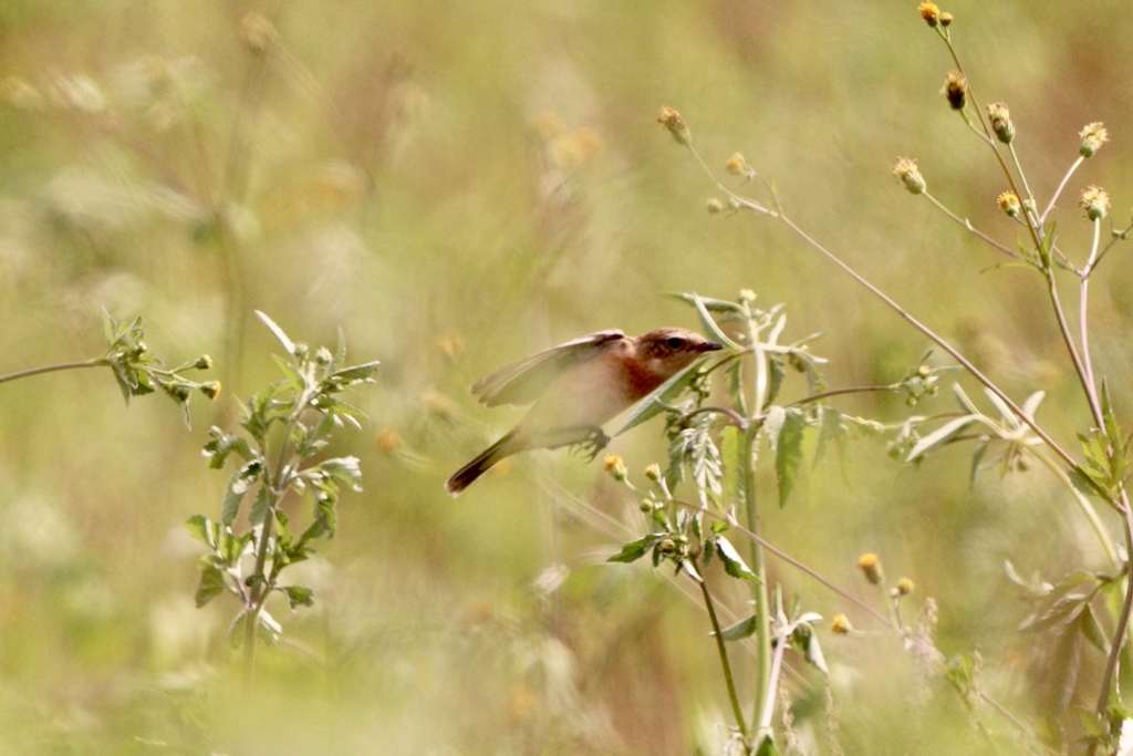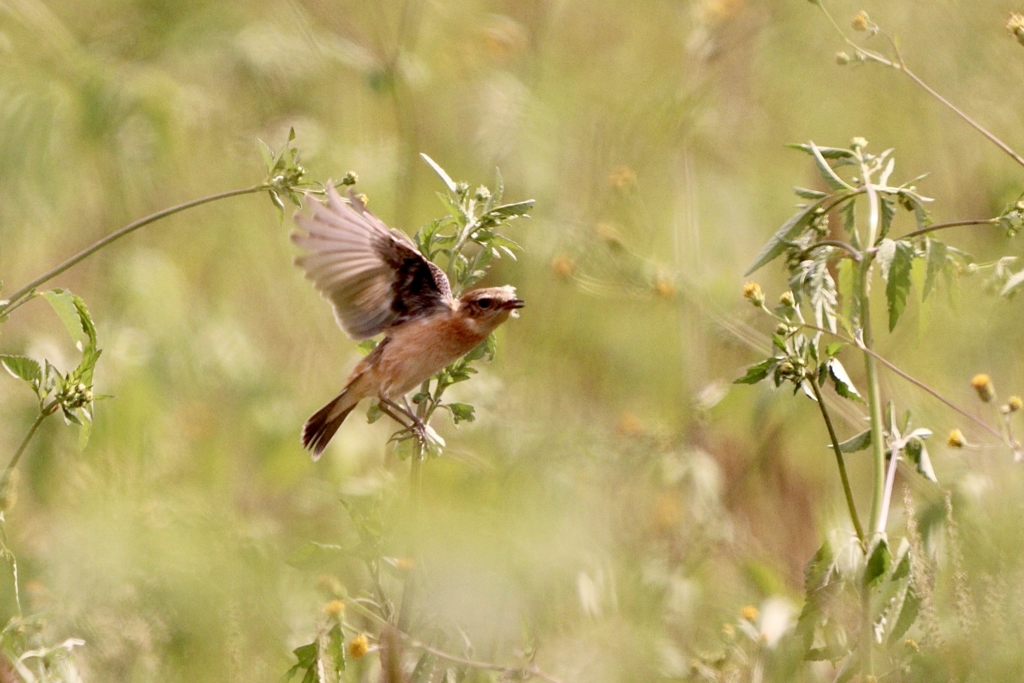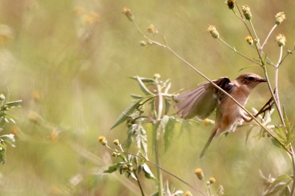 あまり長居はせず、再び渡っていくノビタキです。今回は残念ながら「雄」には会えなかったのですが、きっと「雌」の近くには居るのでしょう。