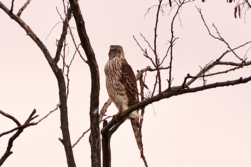 これは雌のハイタカではないかと思います。片足を上げて止まっているのが可愛いですね。
