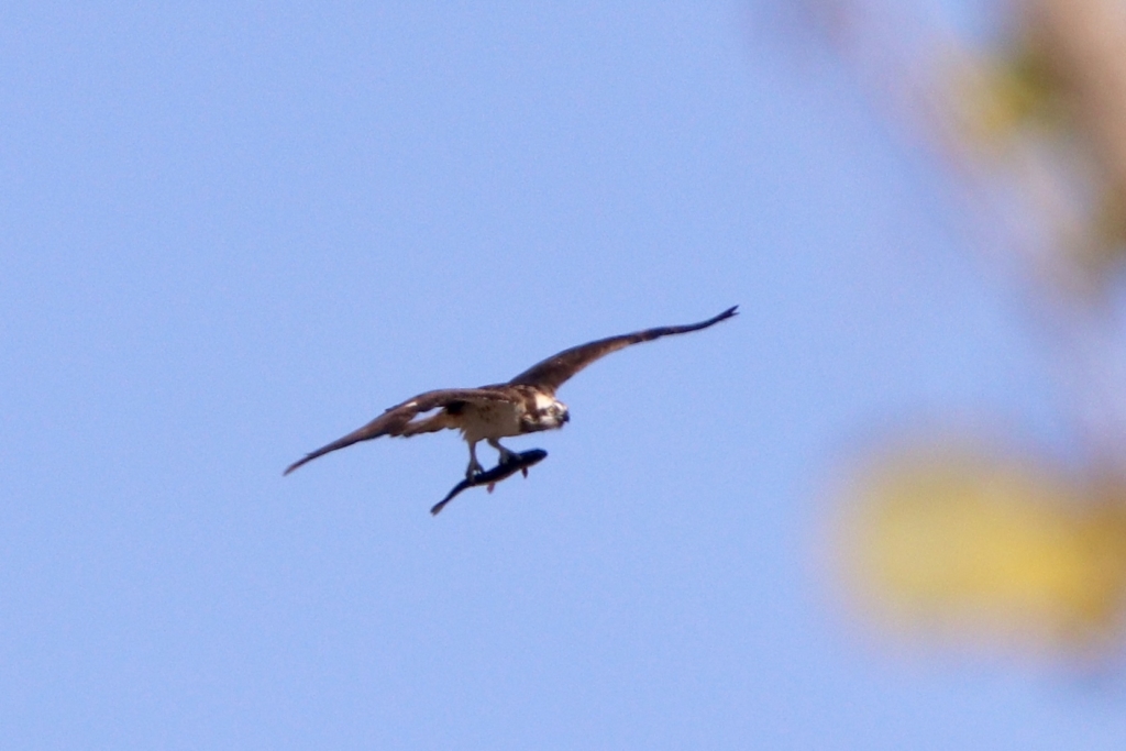 たまたまですが、餌の魚を鷲掴みで飛んでいるのを見かけました。